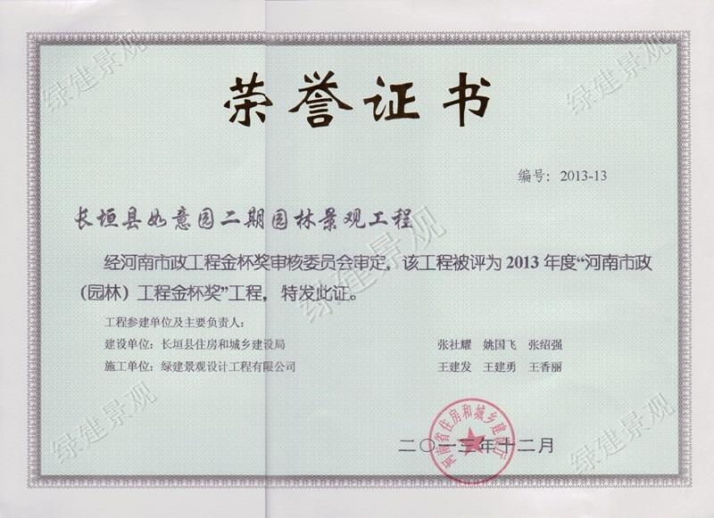 2013年度河南市政(園林)工程金杯獎